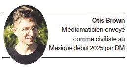 Je ne suis pas religieux, mais je n’ai pas hésité à faire mon offre à DM. En fait, je craignais que l’organisation ne me choisisse pas justement parce que je n’étais pas religieux», évoque Otis Brown, à peine de retour d’un engagement de six mois au Mexique où il a participé plus particulièrement à la création d’un site web pour un partenaire et à la prise de photos. «J’ai aimé les moments de recueuillements que DM vit en équipe . Même si je ne connassais pas les chants, j’ai trouvé qu’avoir un rituel ensemble était une bonne idée!» Le plus dur, pour le jeune homme, a été de passer six mois séparé de ses proches et de sa copine. Pas sûr, donc, qu’il signe à nouveau pour un projet à l’étranger pour les quatre mois de service civil qu’il lui reste à effectuer. Néanmoins, il ne tarit pas d’éloges sur DM. «J’ai apprécié la transparence de cette organisation. DM dit ce qu’il fait et fait ce qu’il dit.»