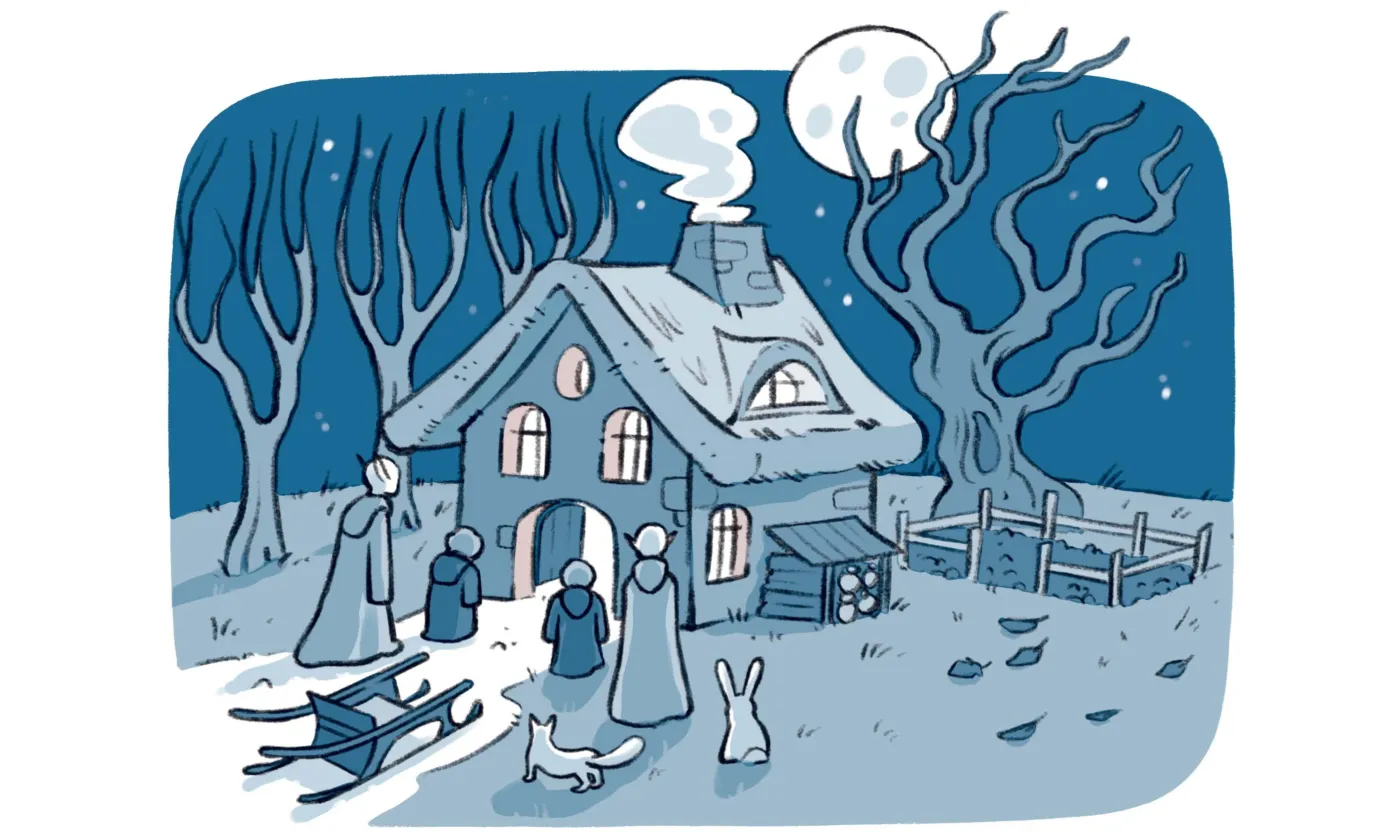Les saluts des nains devinrent moins réguliers, les invitations des elfes arrivèrent de moins en moins souvent dans sa boîte aux lettres. Ce matin-là, l’air était frais dans la forêt, l’automne bien installé et les feuilles multicolores étaient désormais plus nombreuses sur le sol froid et mouillé que sur les arbres. «Il est temps de ramasser les derniers légumes du jardin», pensa Grumpy. Il s’emmitoufla dans un grand manteau, noua une très longue écharpe autour de son cou.